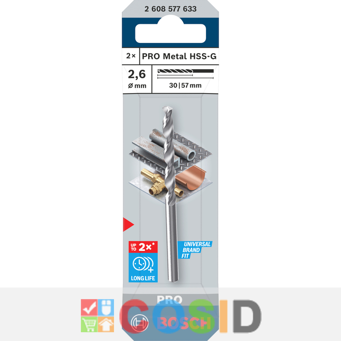 BOSCH Burghiu elicoidal PRO Metal HSS-G, 2,6x30x57 mm