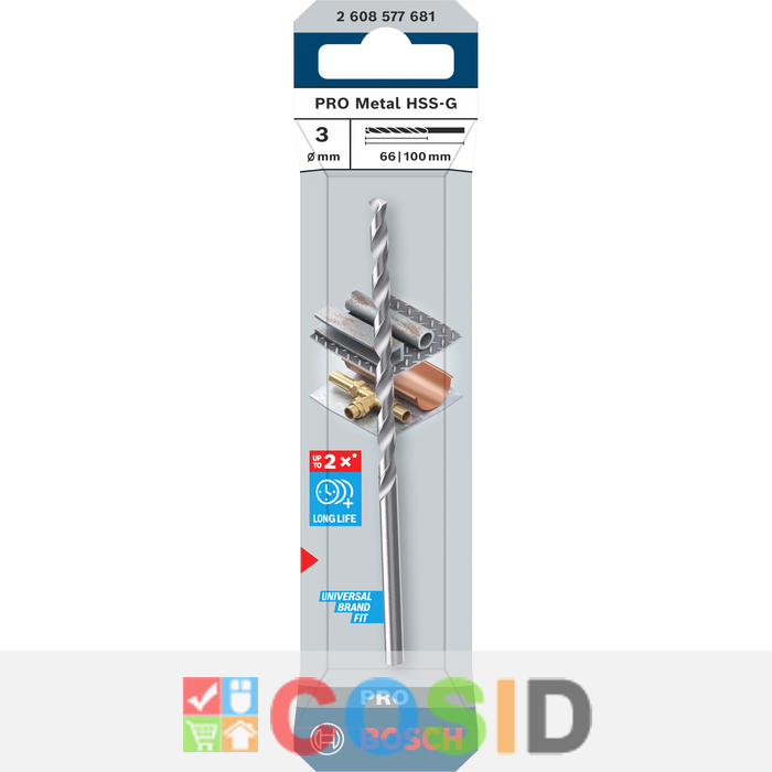BOSCH Burghiu elicoidal PRO Metal HSS-G, 3x66x100 mm