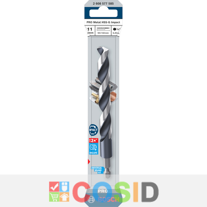 BOSCH Burghiu elicoidal PRO Metal HSS-G Impact, 11x94x142 mm
