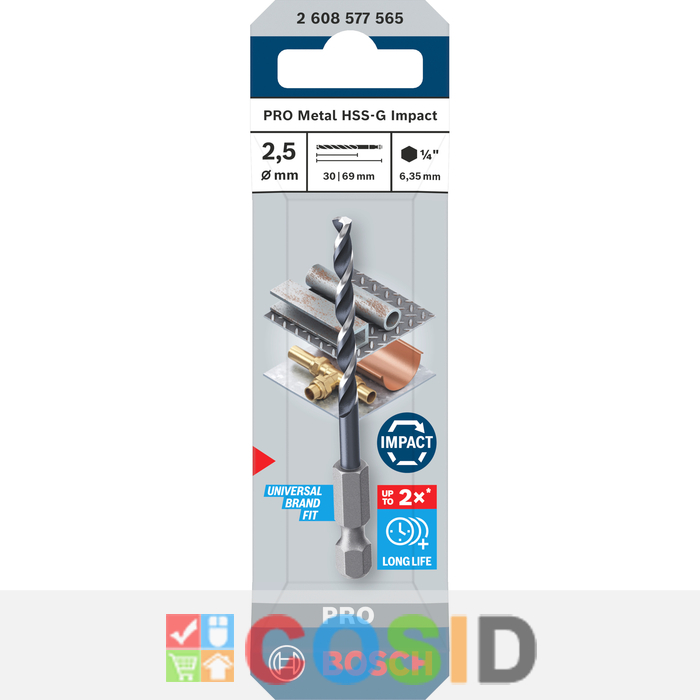 BOSCH Burghiu elicoidal PRO Metal HSS-G Impact, 2,5x30x69 mm