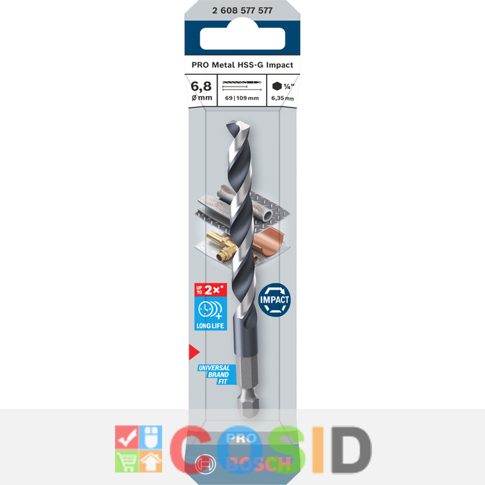 BOSCH Burghiu elicoidal PRO Metal HSS-G Impact, 6,8x69x109 mm