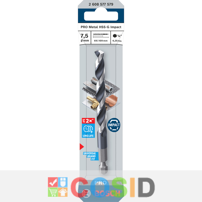 BOSCH Burghiu elicoidal PRO Metal HSS-G Impact, 7,5x69x109 mm