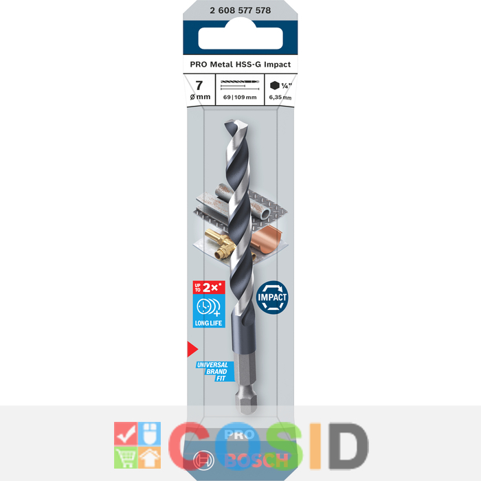 BOSCH Burghiu elicoidal PRO Metal HSS-G Impact, 7x69x109 mm