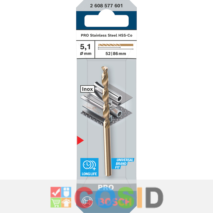 BOSCH Burghiu elicoidal PRO Stainless Steel HSS-Co, 5,1x52x86 mm