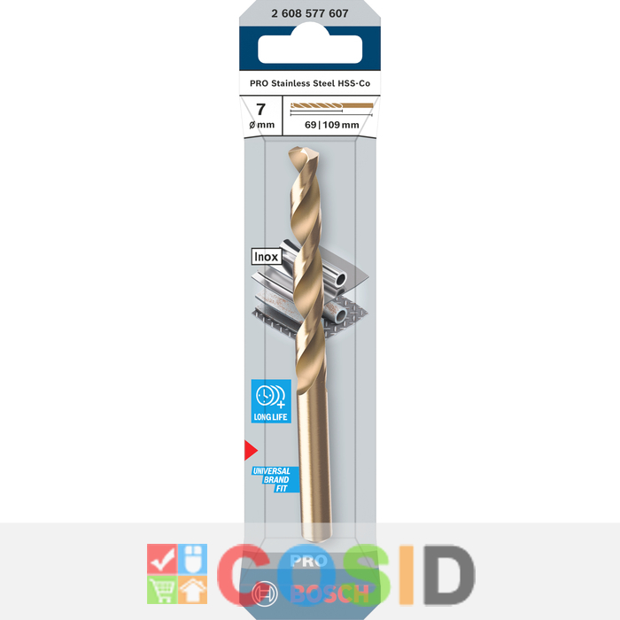 BOSCH Burghiu elicoidal PRO Stainless Steel HSS-Co, 7x69x109 mm