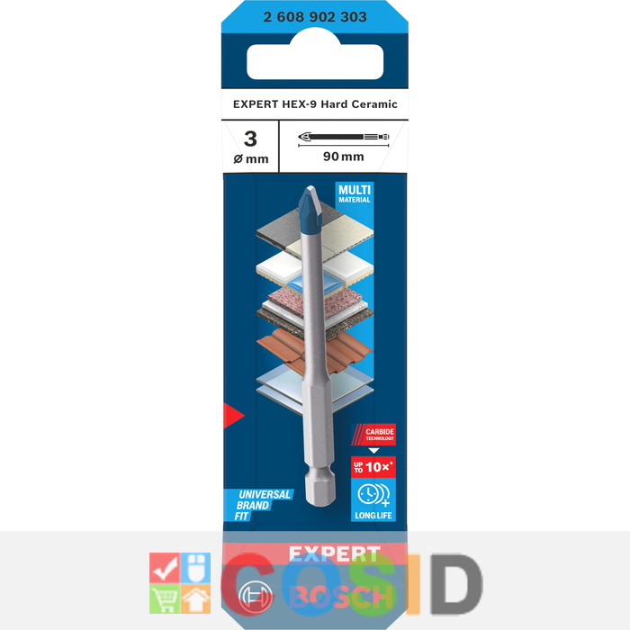 BOSCH Burghiu EXPERT HEX-9 Hard Ceramic, 3 x 90 mm