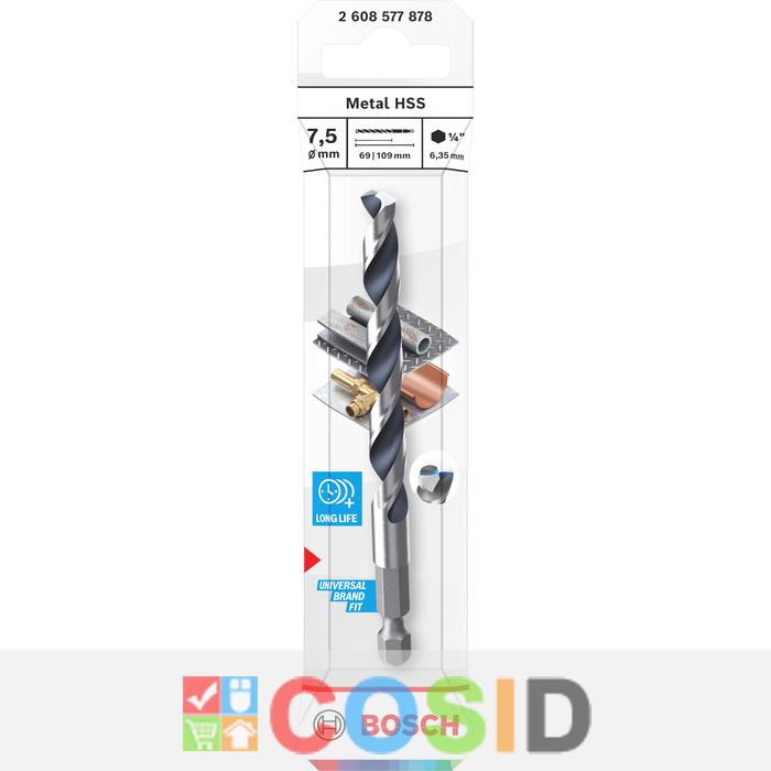 BOSCH Burghiu HSS 7.5x69x109 mm, HEX 1/4"