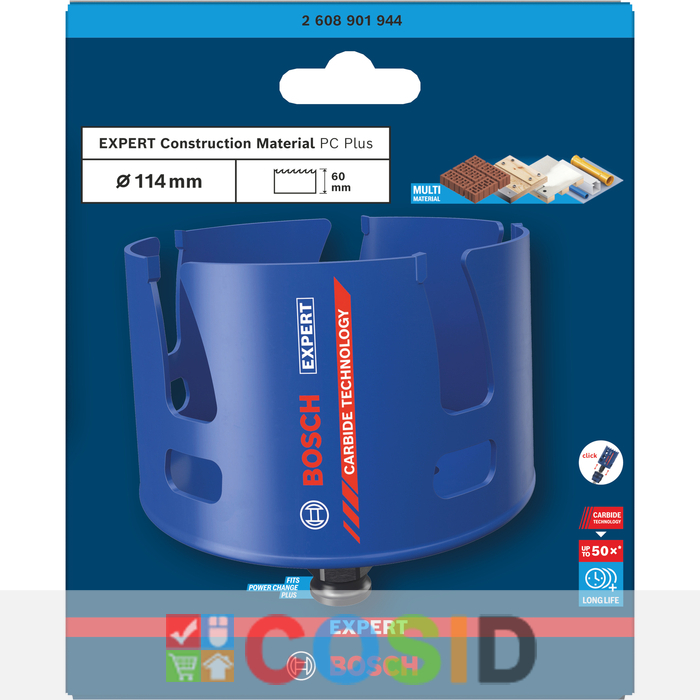 BOSCH Carotă EXPERT Construction Material Power Change Plus, 114 x 60 mm