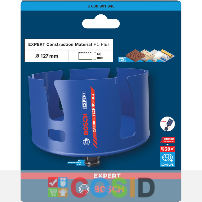 BOSCH Carotă EXPERT Construction Material Power Change Plus, 127 x 60 mm