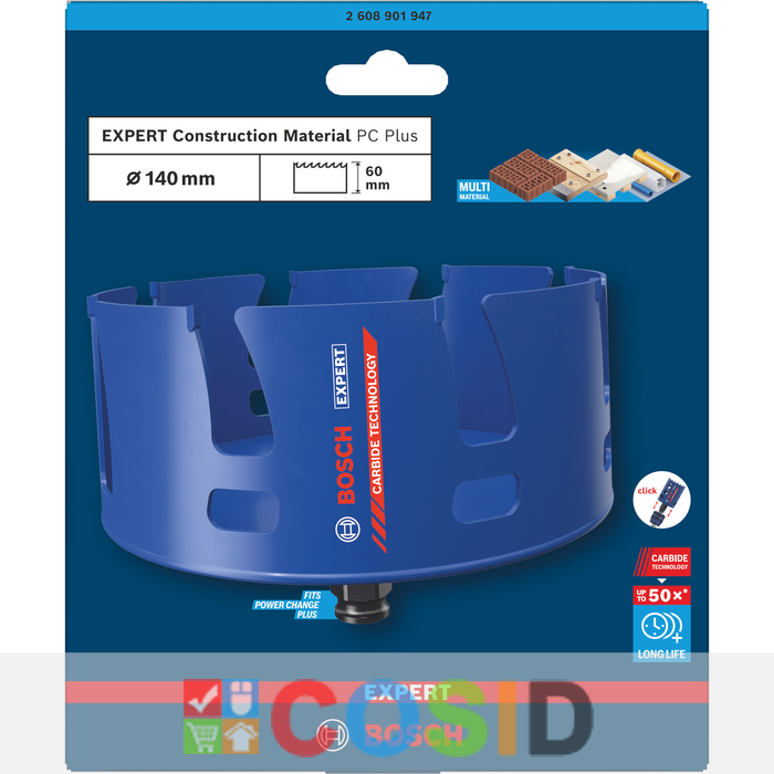 BOSCH Carotă EXPERT Construction Material Power Change Plus, 140 x 60 mm