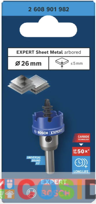 BOSCH Carota EXPERT SheetMetal 26x11 mm, cu sistem de prindere
