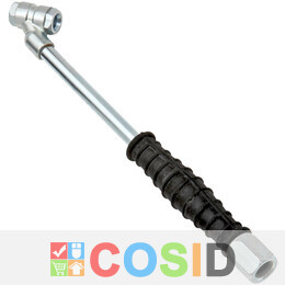 Conector sistem de gonflare valva pneuri Suport dublu pe conector pentru valve de pneuri cu alezaj standard. Acces atat la valvele interioare cat si la cele exterioare ale ansamblurilor rotii duble la vehicule comerciale. Conexiune deschisa pentru folosirea cu indicatoare de umflare pneuri. Maner din cauciuc negru 1/4 filet de intrare aer mama. Lungime generala: 250 mm.Grupa de produs: 259