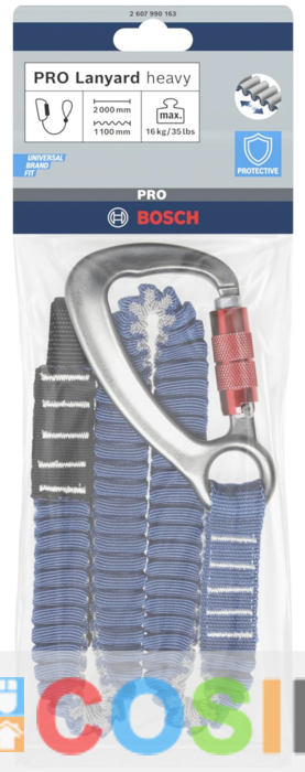 BOSCH Coarda pentru prevenirea caderii, cu bucla si carabiniera, pentru sarcina grea, de maxim 16 kg, 1100 mm detensionat