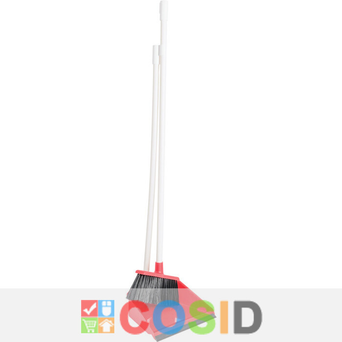 Angled brush head and extra long 980mm handles allow floors to be swept without bending. Synthetic bristles. Clips together for storage. Pan has rubber contact lip. 320mm wide dust pan.