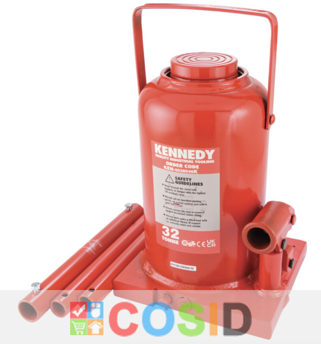Cricurile pentru sticle de înaltă calitate, ultra-rezistente de la Kennedy® sunt proiectate pentru ridicarea fără efort. O unitate etanșă, pot fi folosite vertical less spec înclinat sau înclinat la 3 grade față de o poziție verticală. Caracteristici și beneficii • Prezintă o bază largă, robustă, care oferă stabilitate și rezistență excelente • Oferă liniște sufletească - toate punctele critice de tensiune ale cricurilor sunt întărite pentru durabilitate și fiabilitate sporite • Baze din fontă cu carcasă cilindrului din oțel și o șa cu crestătură reglabilă • Prevăzut cu o supapă de protecție la suprasarcină • Mânerul acționează și eliberarea hidraulică. Aplicații tipice • Potrivit pentru ridicarea sau poziționarea vehiculelor, mașinilor, caselor și/sau a altor structuri de clădire, dar după ridicare Standarde • Conform Directivei CE privind mașinile • Aprobat GS și TUV