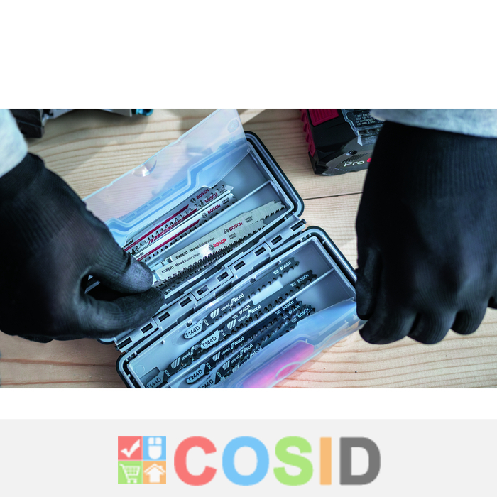 Pentru depozitarea si manipularea cu eficienta a accesoriilor, de exemplu transportul pe santier al unor accesorii precum panze de fierastrau si burghie