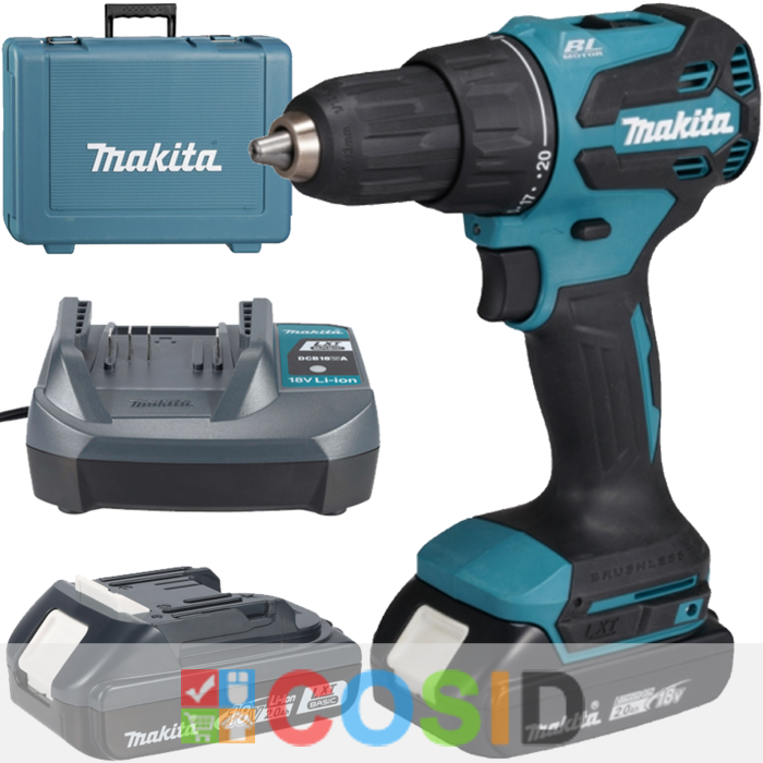 MAKITA Professional DHP490WVE Masina de gaurit cu percutie brushless, cu 2 acumulatori 2Ah, Li-Ion, 18V, 65Nm