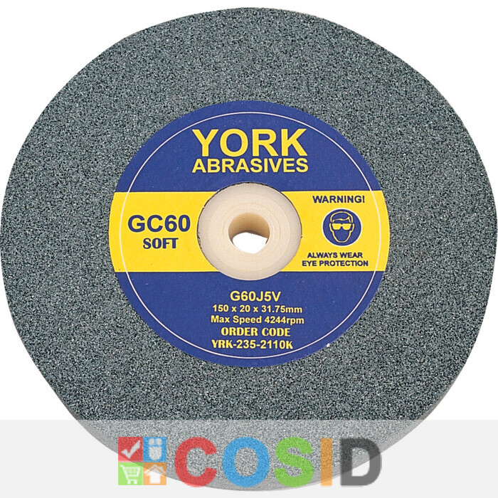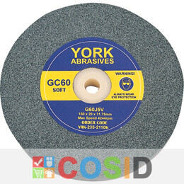 Pietre polizor de banc - De tip 1 Plain, 1/4" OrificiuLegătură verificată pentru polizare de precizie. Nu este afectat de apă, acid și ulei. Toate alezoarele de 11/4, livrate cu bucșe din nailon de alezare de 1, 7/8, 3/4, 5/8 și 1/2. Oxid de aluminiu de uz general dur rezistent la uzură. Folosit pentru polizarea de suprafață și din mână. Oxid de aluminiu rafinat cu operare la polizare mai rapidă. Potrivit pentru oțeluri la viteză mare, polizare de precizie și polizare de suprafață generală. Carbid siliconic, folosit pe materiale cu rezistență redusă la întindere, metale neferoase și polizare cu unelte din carbid. Toate roțile de polizare York sunt livrate într-o cutie unică, ce ajută la prevenirea așchierii și a altor daune accidentale. Carcase de rezervă disponibile la cerere.