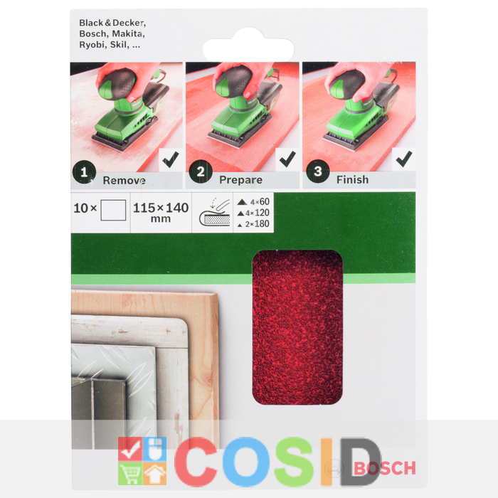 BOSCH DIY Schleifblatt 115x140mm, 3xG60, 4xG10