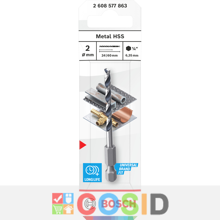 BOSCH Burghiu HSS 2x24x60 mm, HEX 1/4"