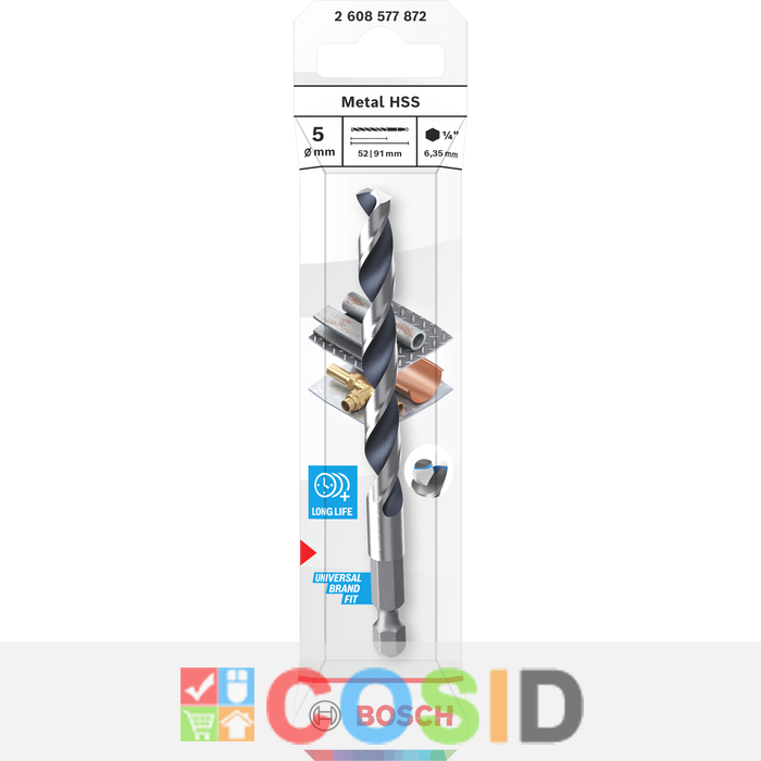 BOSCH Burghiu HSS 5x52x91 mm, HEX 1/4"