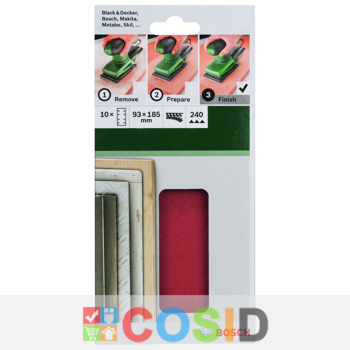 BOSCH Foi abrazive 93x185 mm,R240 8 gauri (10)