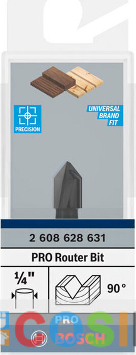 BOSCH Freza caneluri V 1/4"x9.5x12.4x45 90° HM