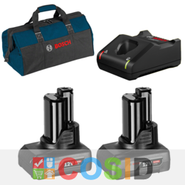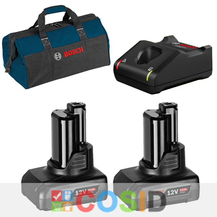 BOSCH GBA12V + GAL12V-40 Set 2 acumulatori Li-Ion, 12V, 6Ah + Incarcator rapid de 4Ah + Geanta textil