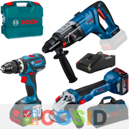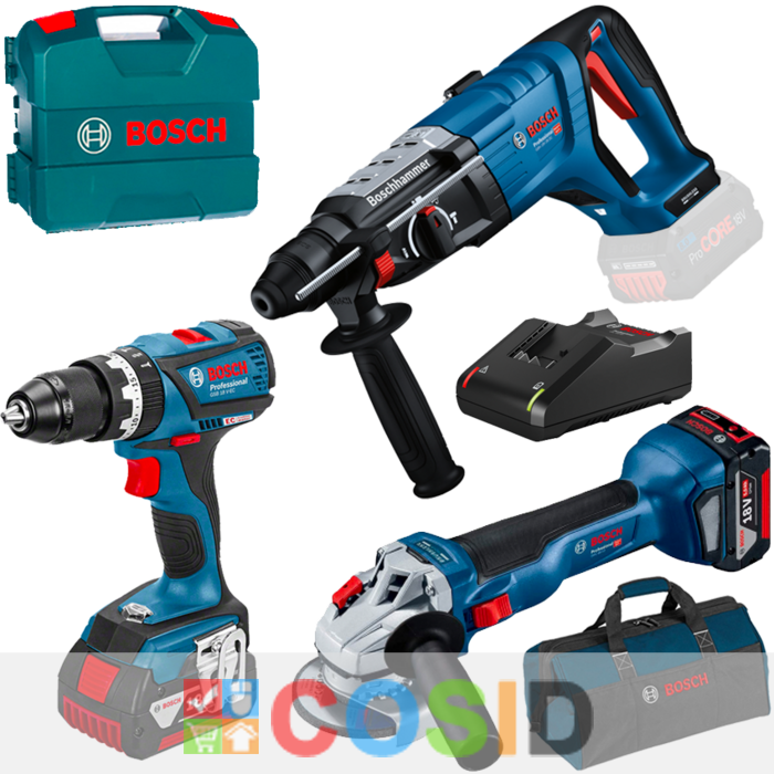 BOSCH Professional GBH 18V-28 D Ciocan rotopercutor brushless, Li-Ion, cu 2 acumulatori Li-Ion, 5Ah, 3.4J GSB 18V-50 Masina de gaurit cu percutie brushless, 50Nm + Valiza + GWS 18V-10 (SOLO) Polizor unghiular brushless, Li-Ion, diametru disc 125 + Geanta textil