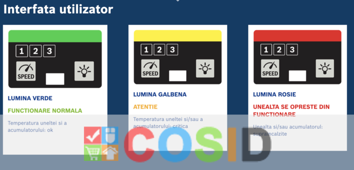 LUMINA VERDE FUNCTIONARE NORMALA: Temperatura uneltei si a acumulatorului: ok