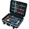 Geanta rezistenta din plastic cu nervuri cu margini ranforsate din aluminiu. Doua panouri incorporate, rabatabile pentru scule cu spatii de fixare cu elastic pentru scule. Lacat cu doua chei. Maner de transport captusit. Sculele nu sunt incluse.