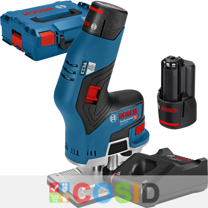 BOSCH Professional GKF 12V-8 Masina de frezat muchii cu 2 acumulatori Li-Ion, 3Ah + L-BOXX