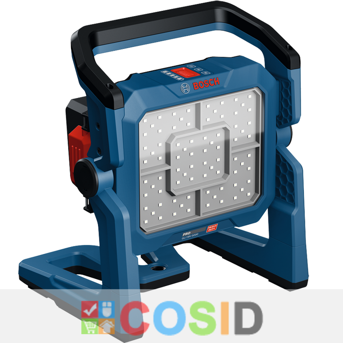PRO GLI18V-5000 iluminează zone de lucru medii și mari. Compatibil cu sistemul Bosch Professional 18V și cu alianța de baterii AMPShare multi-brand.