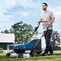Lucru confortabil datorită diametrului de tăiere de 46 cm, ajustării înălțimii în 2 trepte și mânerului pliabil pentru depozitare verticală care economisește spațiu