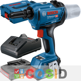 Pistolul de nituit puternic, fără cablu de alimentare GRG 18V-16 C Professional asigură mobilitate nelimitată fără vreun cablu sau echipament suplimentar specifice unei scule pneumatice. Datorită asamblării mai simple şi necesarului redus de întreţinere, această sculă este de asemenea mai rentabilă. Fiind la fel de puternic ca o sculă pneumatică, acest pistol de nituit fixează cu uşurinţă nituri din oţel inoxidabil cu diametre cuprinse între 3 mm şi 6,4 mm în materiale dificile – şi o singură încărcare a acumulatorului este necesară pentru fixarea a peste 1000 de nituri. Meşterii pot alege între funcţia automată sau cea manuală, în funcţie de preferinţe. Iar pentru reducerea perioadelor de nefuncţionare, conectivitatea cu aplicaţia Bosch asigură efectuarea la timp a întreţinerii sculei şi menţinerea unui nivel optim al producţiei.