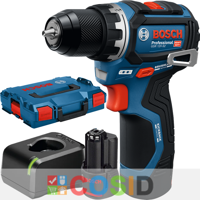 Informaţii adiţionale: GSR 12V-32 Professional este dotată cu Advanced KickBack Control, un motor fără perii, o mandrină metalică robustă, o lampă de lucru puternică și o clemă de prindere la centură.