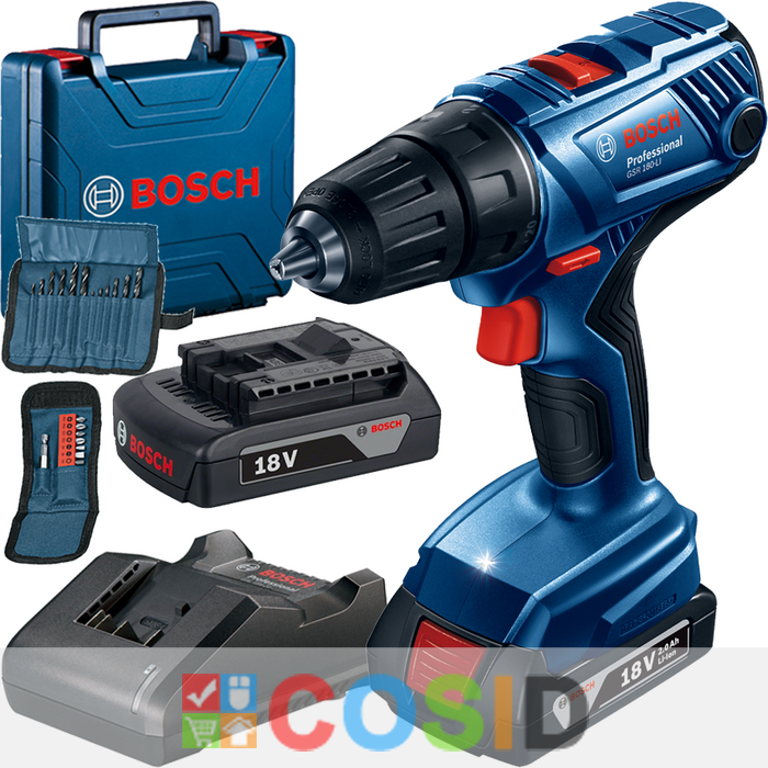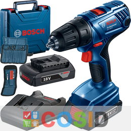 BOSCH Professional GSR 180-LI Masina de gaurit si insurubat cu 2 acumulatori Li-Ion, 2Ah, 54Nm + Set 23 accesorii + Valiza