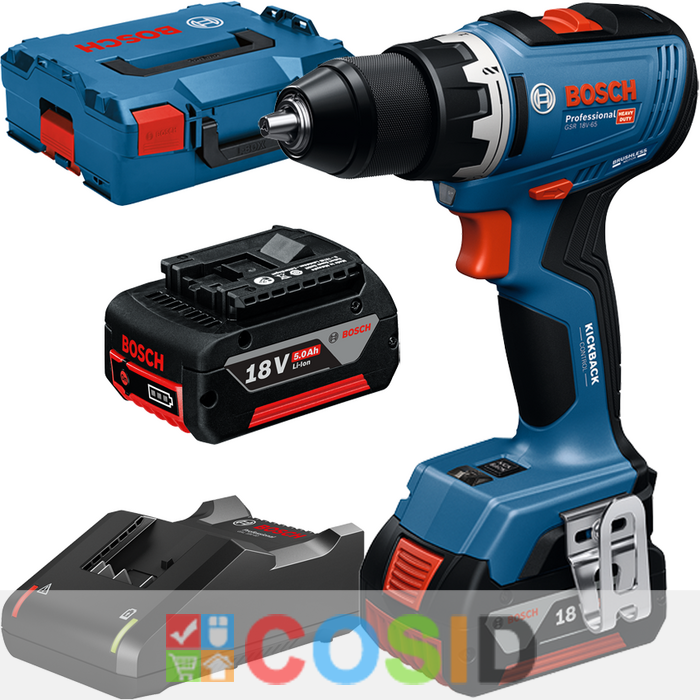 BOSCH Professional GSR 18V-65 Masina de gaurit si insurubat brushless cu 2 acumulatori Li-Ion, 5Ah, 63Nm + Valiza L-BOXX
