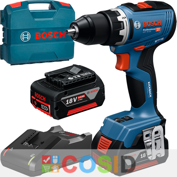 BOSCH Professional GSR 18V-65 Masina de gaurit si insurubat brushless cu 2 acumulatori Li-Ion, 4Ah, 63Nm + Valiza L-CASE