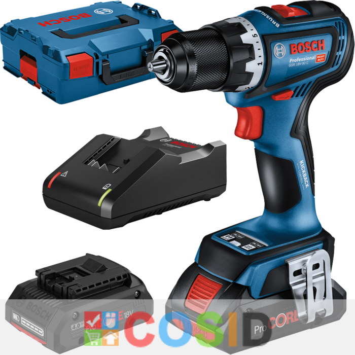 BOSCH Professional GSR 18V-90 C Masina de gaurit si insurubat brushless cu 2 acumulatori Li-Ion, 4Ah ProCore, 64Nm + L-BOXX