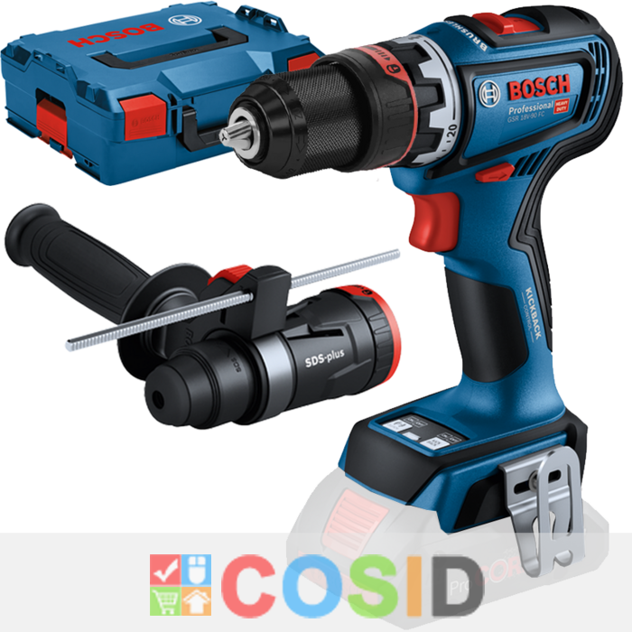 BOSCH Professional GSR 18V-90 FC + GFA 18-M + GFA 18-H (SOLO) Masina de gaurit si insurubat brushless, Li-Ion, 64Nm + 2 atasamente + L-BOXX, fara acumulator in set