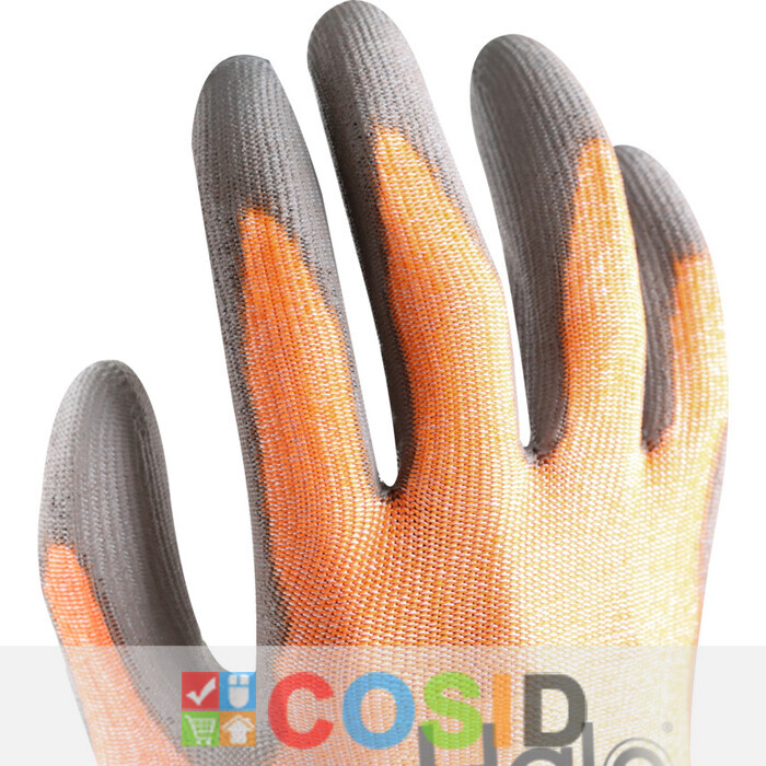 CROMWELL Halo. Cut Resistant Gloves, 13 Gauge Cut B, Size 10, Grey & Orange, Nylon-PU Palm, EN388: 2016