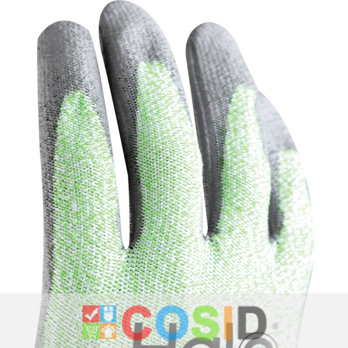 CROMWELL Halo. Cut Resistant Gloves, 13 Gauge Cut D, Size 6, Green & Grey, Nylon-PU Palm, EN388: 2016