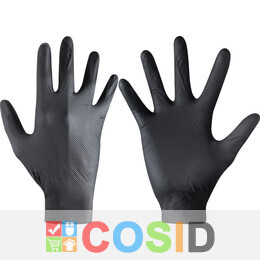 CROMWELL Halo. Disposable Gloves, Diamond Grip, Black, Nitrile, Large, Powder Free, Pack of 50, 8.6g