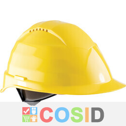 CROMWELL Halo. Safety Helmet With 6 Point Harness, Yellow, ABS, Vented, Reduced Peak, Includes Side Slots