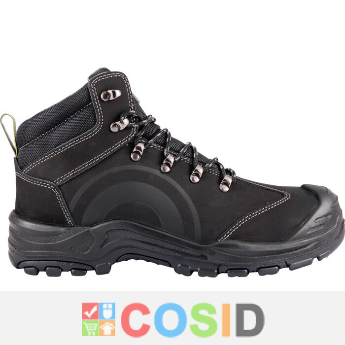 These black hiker boots from the Halo® safety range are water-resistant leather to keep you comfortable and dry in harsh conditions. Lightweight with a slip-resistant polyurethane sole, these safety boots provide excellent grip on all terrains, while the composite toe cap and Kevlar® midsole protect the foot against impact and piercing injuries. These Hiker Composite Safety Boots from the Halo® PPE range have been designed with comfort and performance in mind. Halo® products are manufactured to suit a diverse workforce, and ensure everyone is protected. By choosing Halo® you are supporting worthwhile charities including Mind for Mental Health and The Diversity Trust. Where possible, single-use plastic bags have been removed from Halo® packaging to reduce our impact on landfill and on the environment. Features and Benefits • High-quality, full-length EVA footbed increases user comfort • Manufactured from resilient materials for product longevity • Composite toe cap delivers up to 200J of impact protection • Action black nubuck leather upper is water-resistant to keep feet dry • Polyurethane sole delivers comfort and shock absorbency • Kevlar® midsole protects against penetration injuries • Unisex design for inclusive wear for everyone • Available in varying sizes to suit your needs • Supplied with a spare pair of laces for convenience Standards • Halo® products are BSI tested • EN ISO 20345:2011 S3 SRC Notes • Shoe weights are based on an individual UK Size 9