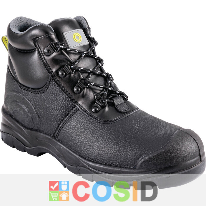 CROMWELL Halo. Unisex Metal Safety Boots, Size 4, Black, Leather Upper, Steel Toe Cap, S1P, EN ISO 20345:2011