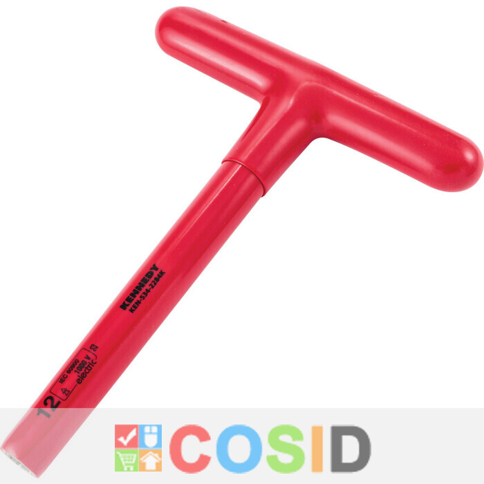The insulated t-socket wrench from Kennedy® features dual-layered safety insulation which protects users against electricity discharge of up to 1000 volts. Features and Benefits • Size and standards printed on the tool body for easy identification • Manufactured from heat-treated, galvanised steel pipe for durability • Available in a range of sizes to suit all requirements Standards • IEC 60900