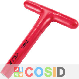 The insulated t-socket wrench from Kennedy® features dual-layered safety insulation which protects users against electricity discharge of up to 1000 volts. Features and Benefits • Size and standards printed on the tool body for easy identification • Manufactured from heat-treated, galvanised steel pipe for durability • Available in a range of sizes to suit all requirements Standards • IEC 60900