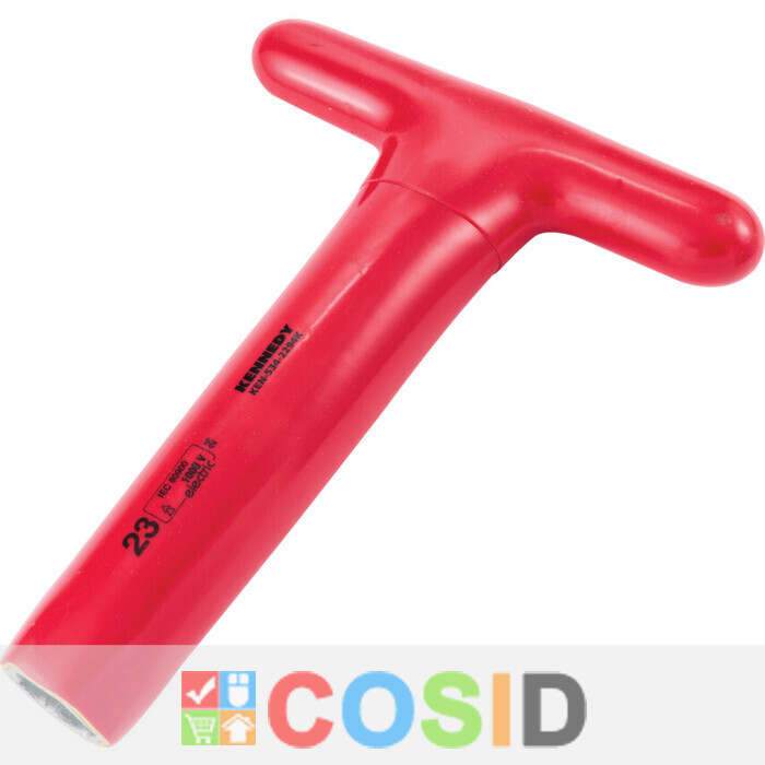 The insulated t-socket wrench from Kennedy® features dual-layered safety insulation which protects users against electricity discharge of up to 1000 volts. Features and Benefits • Size and standards printed on the tool body for easy identification • Manufactured from heat-treated, galvanised steel pipe for durability • Available in a range of sizes to suit all requirements Standards • IEC 60900